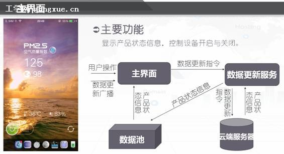 据项目负责人、计算机学院副院长韩启龙教授介绍,项目采用新兴的基于“互联网+”的空气质量监测信息服务技术,将智能空气净化器作为空气质量信息采集终端,通过互联网将数据上传到云端服务器,利用大数据分析技术,实时监控PM2.5、苯、甲醛、氨类等各项指标,使用户对室内空气污染程度了如指掌,并为其进行智能空气净化模式推荐。我校团队承担了与此相关的智能控制系统研发、后台大数据分析及推荐等技术任务,并为这一抗霾“神器”专门开发了手机等APP客户端,可用移动端对其进行遥控或远程操控。只要将智能空气净化器联网,无论“主人”身处何方,都可以用手机调整设置它的定时、风速、运行模式、消毒、负离子、湿度、更换滤网等功能;即使机器处于关机状态,也能即时获取室内温度、湿度、空气质量等数值。