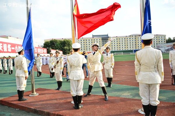 国旗护卫队在嘹亮的军号声中入场。大会在庄严的升国旗、校旗仪式中拉开帷幕。