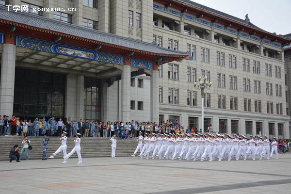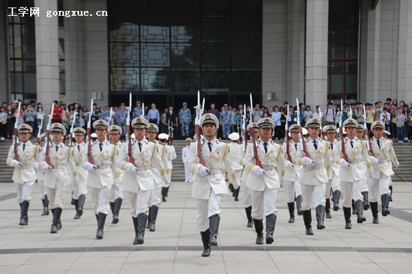 中午13时,海军国防生在奥列霍夫广场列队,三百余名国防生组成的国旗护卫队、徒手、持枪等4个方队如青松挺立,接受校领导的检阅。随后的分列式,4个方队伴随着雄壮的检阅进行曲依次走过阅兵台,国防生整齐的步伐、挺拔的身姿,充分展现了新一代海军后备军官的风采。阅兵结束后,国旗护卫队进行了精彩的队列、枪操表演。国防生的精彩表演吸引了学校广大师生前来观看。