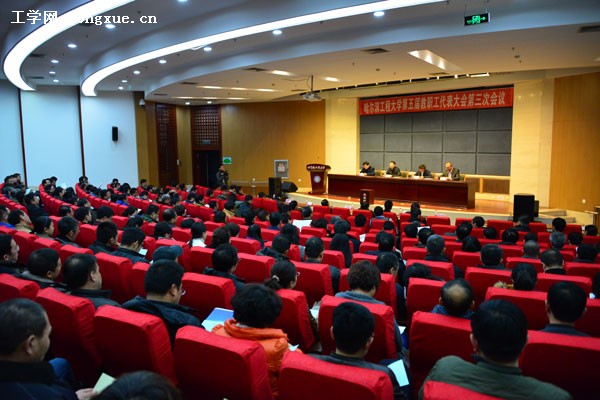 第五届教职工代表大会第三次会议24日在图书馆报告厅举行。校党委书记谷焕民主持会议。201名教代会正式代表参加会议,学校副处级以上干部、部门工会主席、各级人大代表、政协委员、民主党派、侨联委员会委员列席会议。会议审议了《哈尔滨工程大学章程》及更改学校校名事宜。