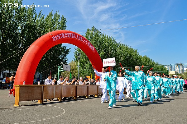各表演队进行了健美操、柔力球、太极拳、服饰表演等团体表演。哈工程大学社区的全体成员也参加了本次运动会,并带来腰鼓表演。