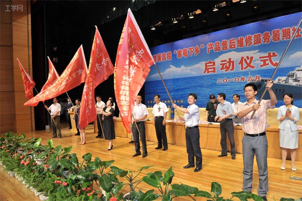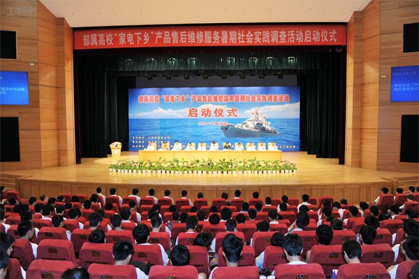 23日,工信部部属高校大学生“家电下乡”产品售后维修服务暑期活动启动仪式在我校启航剧场举行。