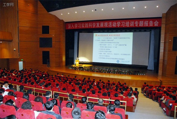 学校10日在启航活动中心剧场举行深入学习实践科学发展观活动学习培训专题讲座第四讲,校长刘志刚作了《践行科学发展观,推进内涵式发展——关于研究型大学建设历程的回顾与思考》专题辅导报告。全体校领导、校长助理,全体处级干部、机关和直属单位科以上干部、离退休老干部代表、各院系党员听取了报告。