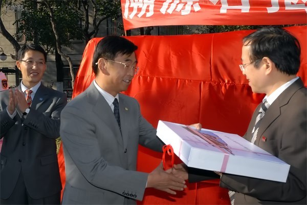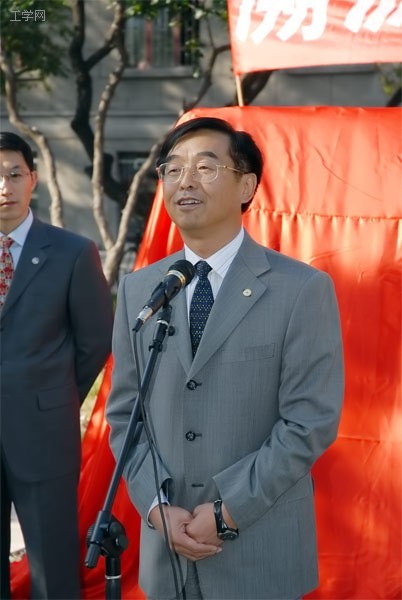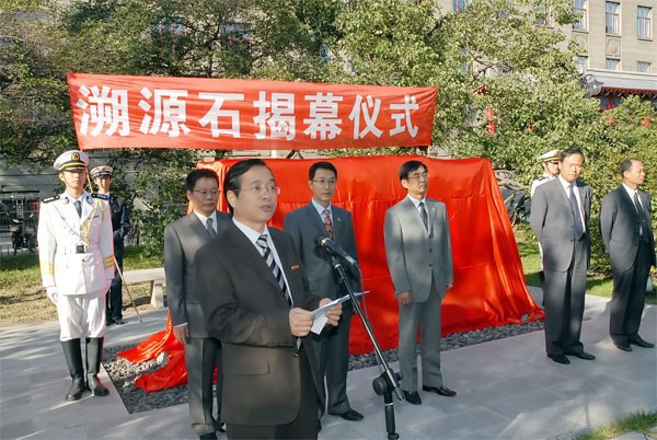 陈根甫在仪式上讲话。他指出,在哈军工建校55周年的喜庆日子里,南理工溯源石正式落成。这是一块继承弘扬哈军工精神、优良传统的丰碑。南理工与哈尔滨工程大学同根同源、血脉相连、息息相关。55年风雨兼程、春华秋实,相信两校在服务国防科技事业和社会经济建设方面会做出更大贡献,取得更大成果。