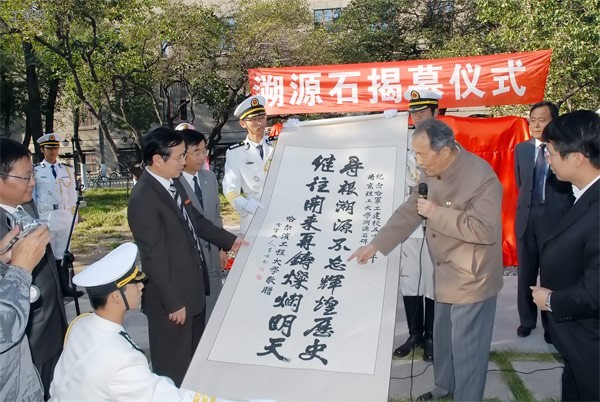 哈军工老干部代表 万俊华 教授在仪式上讲话,对于溯源石的落成表示祝贺和欣慰。
