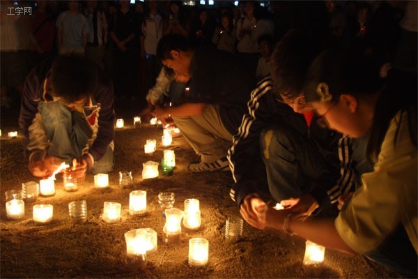 5月15日晚,也就是四川省汶川地震发生3天后,我校南操场上300余名同学自发为在地震中遇难的人们祈福。