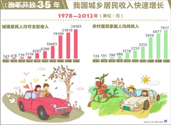 图表:改革开放35年 我国城乡居民收入快速增长 新华社记者 高微 编制(资料图)