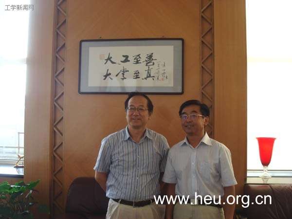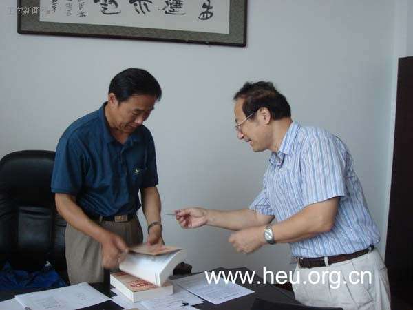 此前,《哈军工传》作者校友滕叙兖来校,向校领导王树权、刘志刚、魏潾赠书留念。