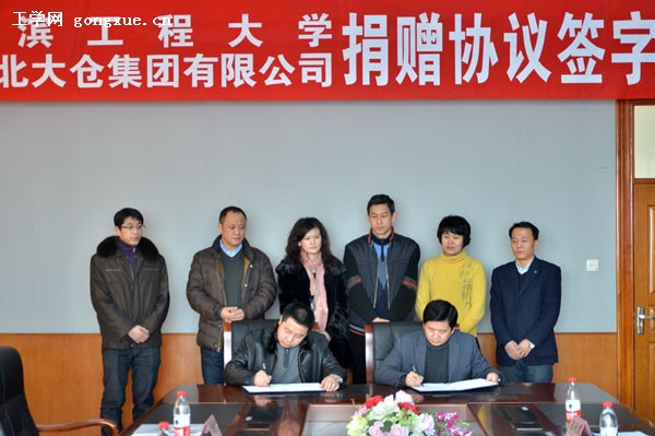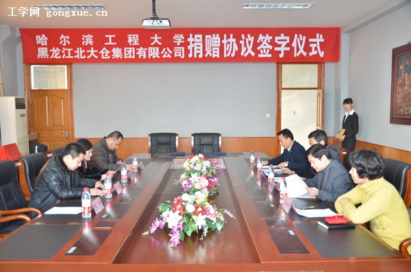 根据《哈尔滨工程大学捐赠管理办法》,学校向北大仓集团有限公司颁发捐赠纪念牌,并将学校启航活动中心教师沙龙活动室冠名为“北大仓厅”。