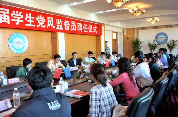 9月16日,我校首届学生党风监督员聘任仪式在主楼大会议室举行,来自16个院系的18名学生党员成为学校首批党风监督员。