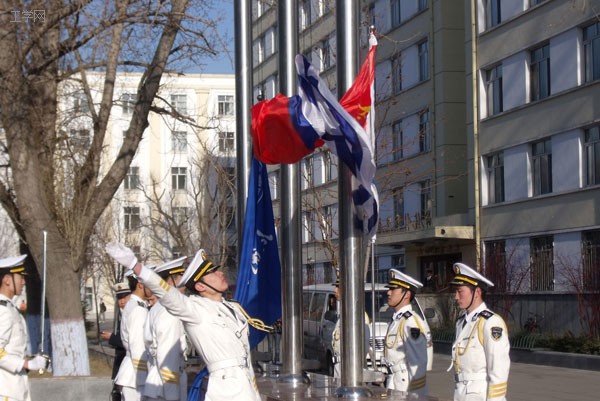 校党委副书记、国防教育学院第一政委魏潾,国防教育学院有关负责人以及海军驻哈尔滨工程大学选培办干事靳相玮和张宝维参加了升旗仪式。