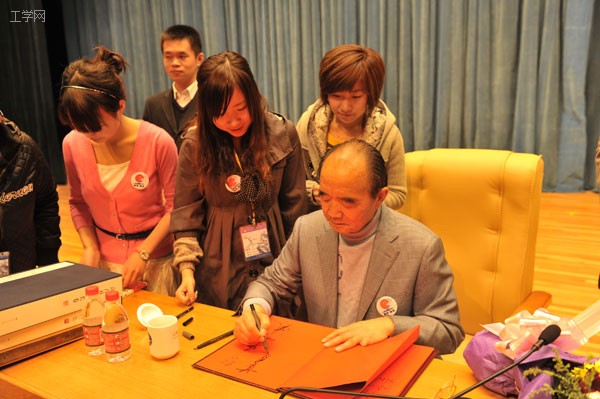 现场气氛热烈,同学们对高占祥幽默风趣、睿智犀利的报告时时报以热烈的掌声。高占祥在现场认真解答了同学们的提问,并展示了随神舟六号遨游太空的书法长卷。他还赠送给我校师生100本个人著作《新三字经》、若干书法、绘画集。