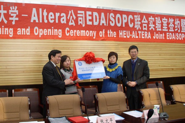 1月12日,哈尔滨工程大学-ALTERA公司EDA/SOPC联合实验室签约暨揭牌仪式在校举行,将成为我校可编程嵌入式系统开发及创新人才培养的重要基地。