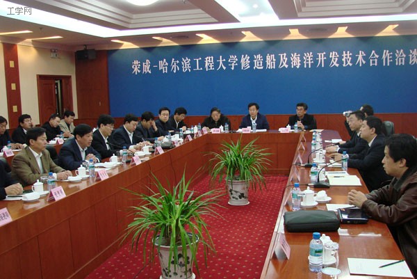由荣成市政府举办的“荣成——哈尔滨工程大学修造船及海洋开发技术合作洽谈会”日前举行。荣成市是以船舶工业为支柱产业,山东省重点发展的船舶工业聚集区之一,全市拥有48家各类修造船企业、16家船舶配套企业、造船能力达到80万载重吨的制造大型集装箱船、客滚船、重吊散货船及现代渔船为主的现代化船舶制造基地,培植了“黄海造船”、“神飞造船”等一大批知名企业。同时,企业存在技术创新能力不足、自主设计能力弱、高水平技术人员短缺、产品附加值低等方面的问题。迫切需要加强技术、产品的创新,尤其是专业技术人才的培养和引进,希望通过与我校进行多方面合作,提高企业自主创新能力,促使荣成市整体船舶工业的升级。