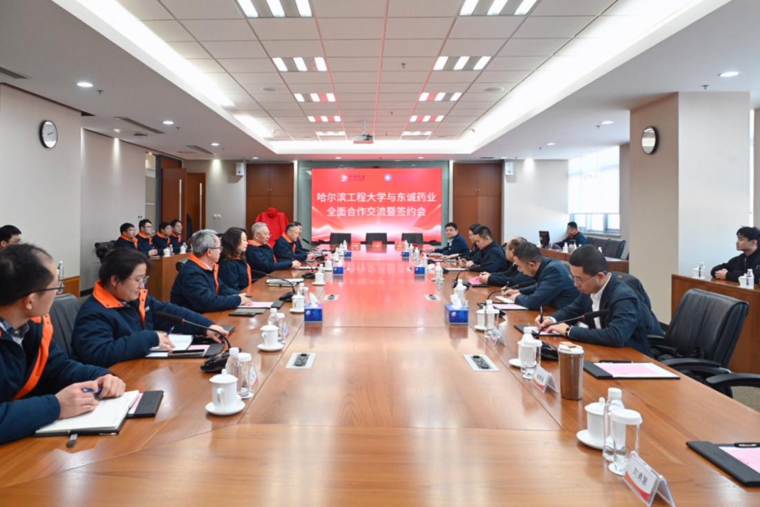 学校深入学习贯彻党的二十届四中全会精神,持续深入贯彻落实习近平总书记视察学校重要讲话重要指示精神,落实“五个坚持、五个注重”办学原则,坚持开放办学,全力推进学校事业高质量发展,12月28日,学校与东诚药业集团全面合作交流暨签约会举行。校党委副书记、校长殷敬伟,东诚药业集团董事长由守谊出席会议并讲话。校长助理陈海龙,东诚药业集团副总经理由赛,烟台蓝纳成生物技术股份有限公司总经理吴晓明参加座谈会。