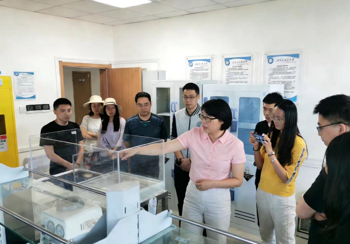图:薛云为学生介绍放射性废水处理装置