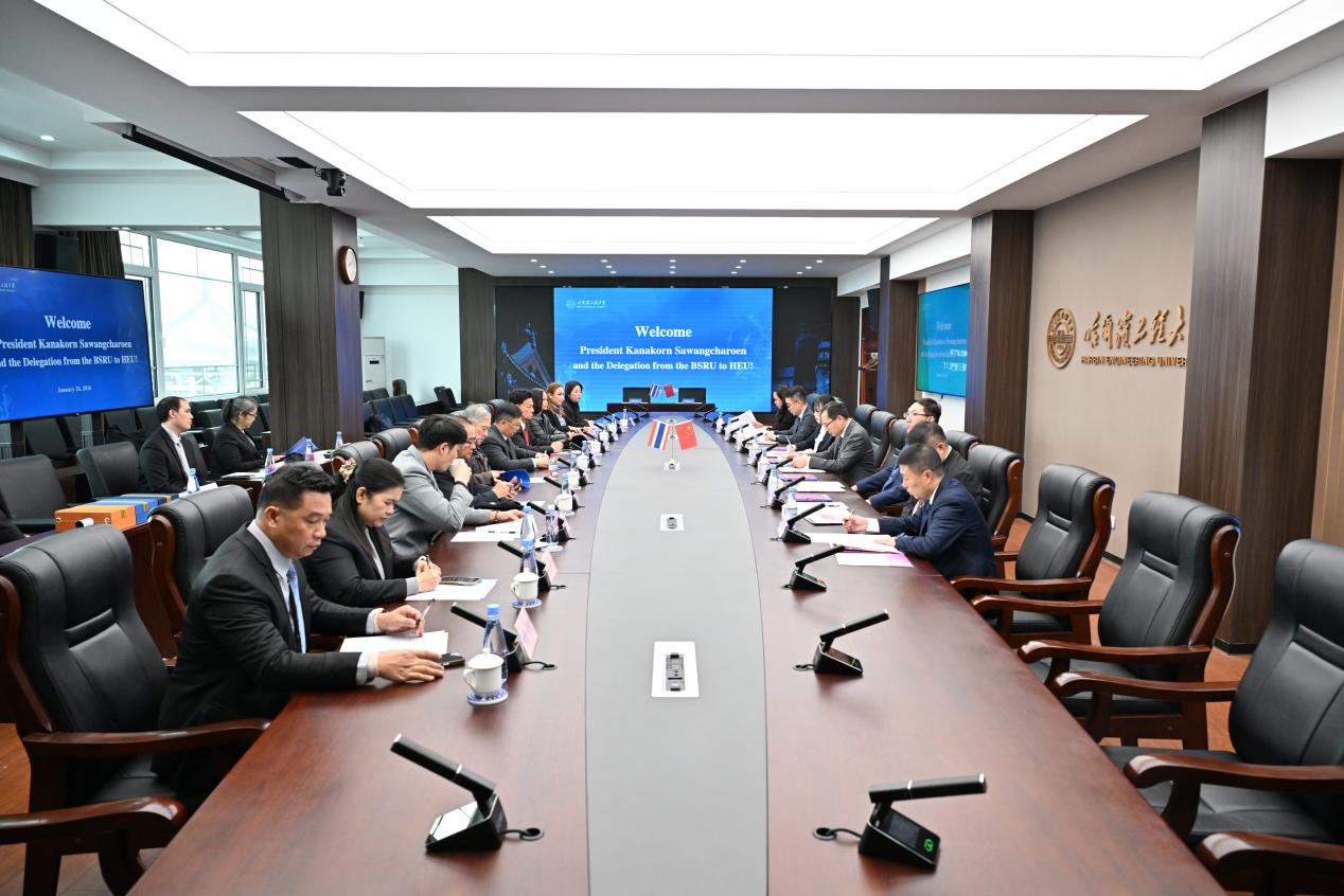 1月26日,泰国班颂德昭帕亚皇家大学校长卡纳功·萨旺初伦一行14人来校访问,校党委常委、副校长於志文、尹航会见来访客人。