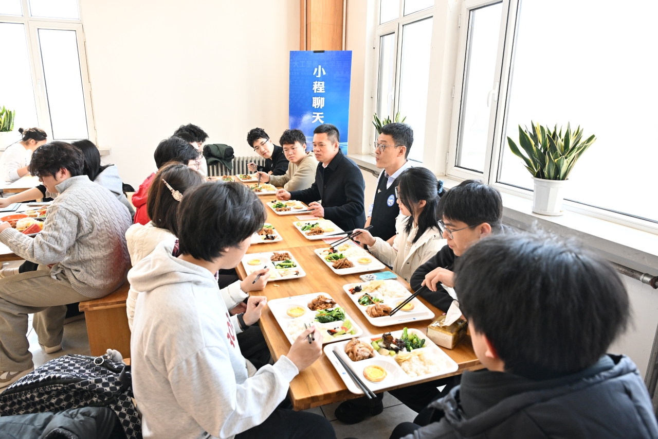 开课第一天,“小程聊天”同步开启,在大学生美食城三楼,殷敬伟与来自未来技术学院、航建学院、动力学院、核学院等教学科研单位的10位2025级优秀本科生共进午餐,共话学习生活。针对同学们提出的网课建设、科研项目融入、个人发展规划等建议与困惑,他逐一解答回应。他表示,学校将认真梳理同学们的宝贵意见,逐项落实反馈,不断完善育人环境,助力每一位学子在哈工程健康成长、励志成才。