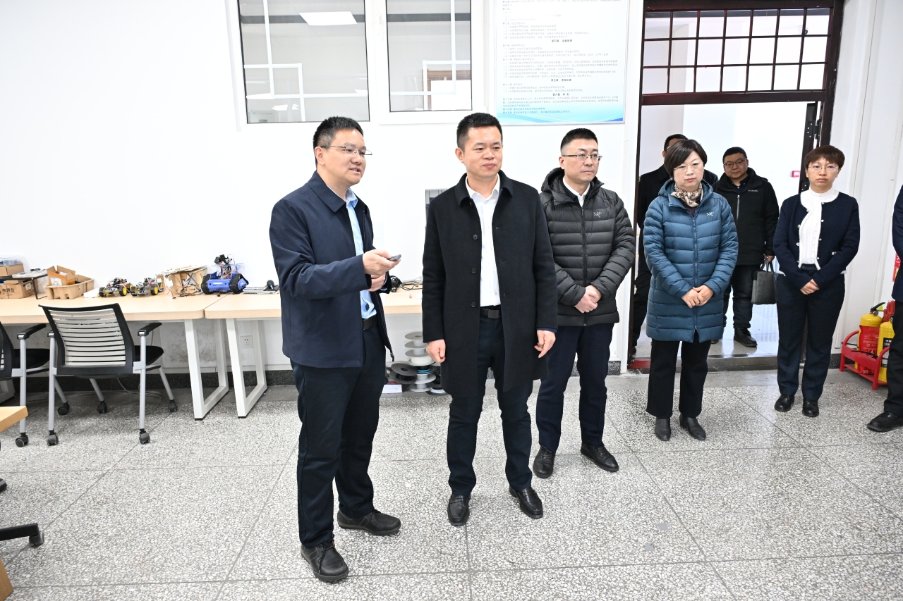 在61号楼的机械基础新工科实验室、未来学习中心分中心,殷敬伟现场观摩测压力机实验教学,观看编程开发的机械狗,体验虚拟生产线生产等。他指出,项目式课程要充分结合学校“三海一核”办学特色,将数字化、物联网、云计算等新技术深度融入教学场景,贯通知识能力链条。未来学习中心分中心要充分发挥智慧教学特色优势,进一步打破学科边界,辐射带动其他学科教育教学协同发展。