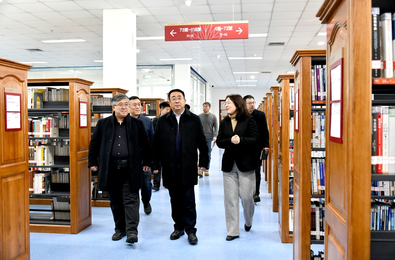 在图书馆,宋迎东一行察看服务保障与安全工作情况,了解开放时间、借阅服务和馆藏调配情况,检查消防、监控设备、巡查记录并了解学生应急演练情况,强调图书馆要优化服务、丰富馆藏,强化安全管理,发挥育人功能,为师生提供优质服务。