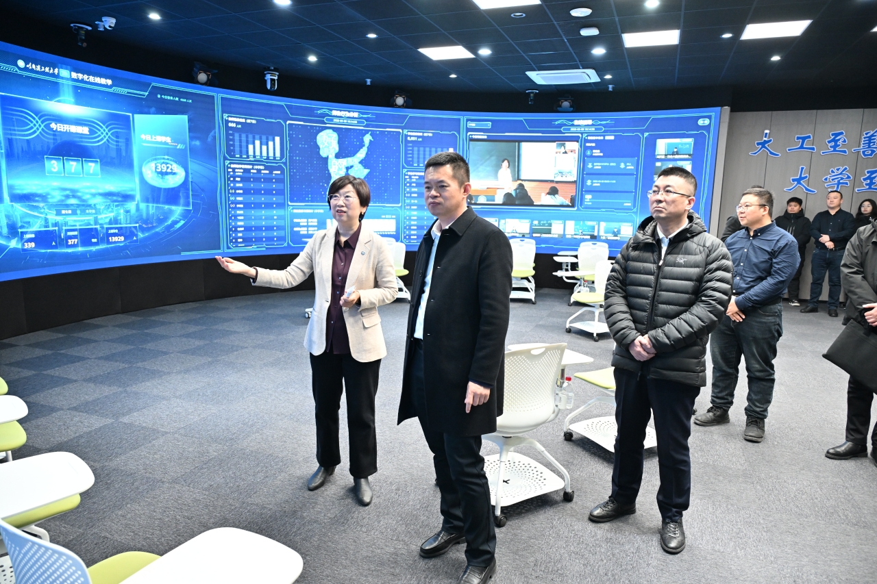 在21B教学楼全景教室,殷敬伟通过数字化在线教学平台,实时查看了新学期在线授课、课程资源建设等情况,并随机在线巡课,同时进入课堂现场听课。在听取了本科生院关于提升教学质量的专项汇报后,他指出要持续提升教师授课水平,进一步增加创新创业学时,助力学生多元化成长。