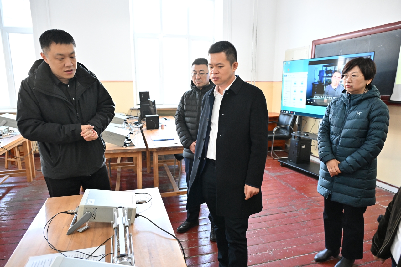 在11号楼,殷敬伟先后到物理国家级实验教学示范中心、力学实验教学示范中心,听取中心建设及数智化转型进展情况。他指出,实验课程要紧密对接学科前沿和产业新发展,将教学场景与具体应用深度融合,做好课程个性化设计与创新赛事、创新创业的有机衔接,有效提升学生的理论思辨和实践动手能力。他同时指出,要进一步深化国际化培养,培育兼具家国情怀与国际视野的拔尖创新人才。