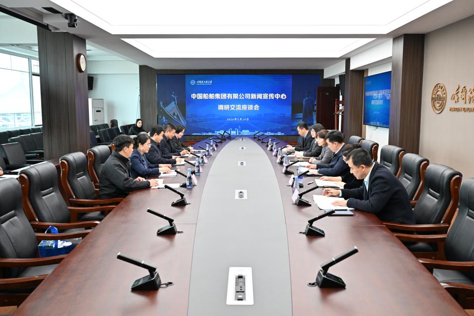 原国锋简要介绍了中船集团新闻中心的历史、组织架构、媒体平台运行等基本情况。他表示,哈工程作为船舶行业特色高校,办学历史悠久、文化底蕴深厚、红色基因鲜明,为我国船海事业和国防现代化作出了重要贡献。多年来,学校为中船集团输送一大批可靠顶用的行业人才,为集团的建设发展注入强劲动力。希望双方进一步拓展合作空间,加强在新闻宣传、文化建设等领域的互动交流,实现人才培养、科学研究等方面的双向赋能、共同发展,为海洋强国、造船强国建设汇聚强大精神力量。