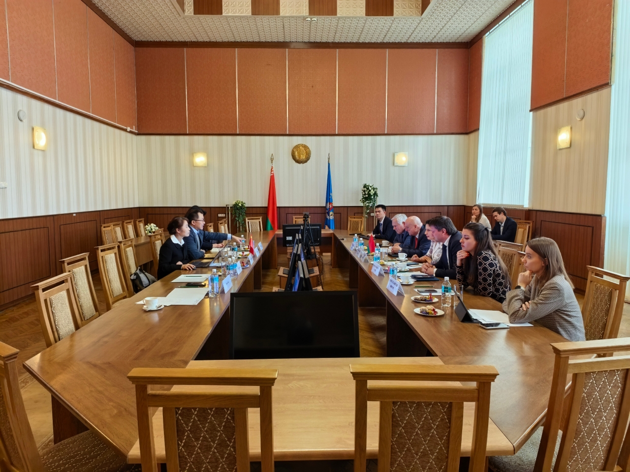 4月1日上午,张石梅一行与白俄罗斯国立信息与无线电大学副校长维克多·罗曼诺维奇·斯杰姆皮斯基、德米特里·库兹涅佐夫进行会谈。张石梅表示,双方高校都是服务国家战略、特色鲜明的高水平大学,深耕各自领域多年,形成了独有优势,希望未来双方能够扩大合作专业领域、开展常态化沟通合作,培养更多创新人才,助力两国科技进步与发展。代表团一行还参观了科技成果馆和学校相关实验室。