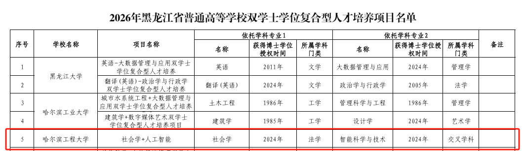 2026年黑龙江省普通高等学校双学士学位复合型人才培养项目名单