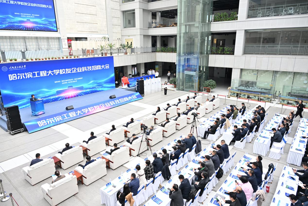 黑龙江省人民政府副省长丛丽,校党委书记宋迎东出席大会并讲话。党委副书记、校长殷敬伟主持大会。黑龙江省教育厅副厅长赵雅琴,科学技术厅副厅长张喆,哈尔滨新区管理委员会主任贺业方,道外区区长王涛,南岗区区长任海龙,平房区委常委、副区长王让,哈尔滨高新技术产业开发区(自创区)管委会专职副主任王虹,哈尔滨市科学技术局副局长刘修宽,哈尔滨创业投资集团有限公司董事长王刚,中国船舶集团有限公司第七O三研究所副所长孙鹏,党委副书记、纪委书记姚震,党委副书记张石梅,校长助理陈海龙出席大会。来自省内相关厅局、各高校校友会、校友企业及创投机构的100余位代表线下参会,线上参与人数逾万人。