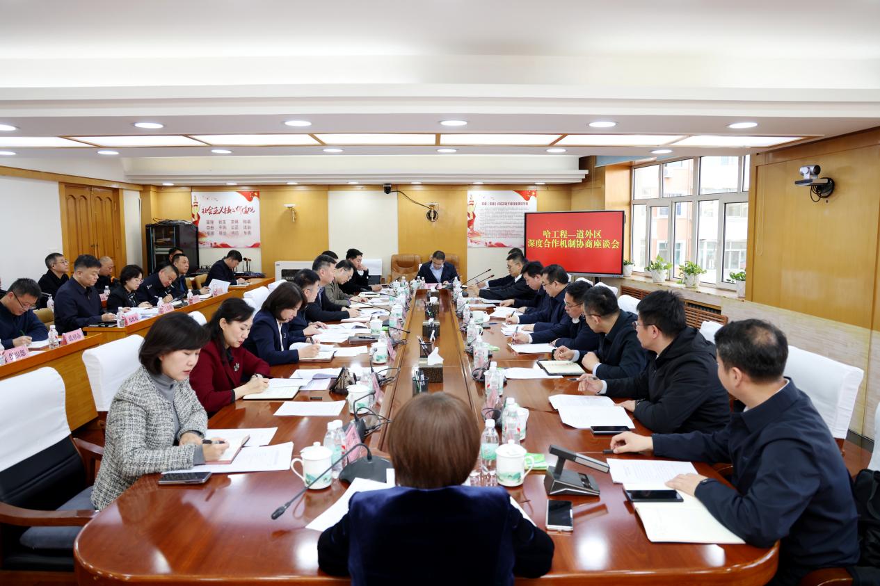 为深入贯彻党的二十大和二十届历次全会精神,持续深入贯彻落实习近平总书记视察学校重要讲话重要指示精神,推动“十五五”良好开局,助力龙江全面振兴,4月23日,哈尔滨工程大学党委书记宋迎东带队前往哈尔滨市道外区委,就深化科技创新、成果转化、人才共育、资源共享等方面的合作开展座谈交流。