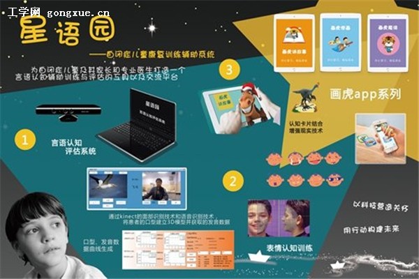 “传统纸质卡片认知训练过程枯燥无味且效果不明显,我们就想着去开发出一套更具趣味性、科学性的自闭症辅助训练系统”,团队成员、哈工程应用心理学专业大三学生丁宁说。据介绍,“星星言语乐园”通过大学生自主研发的“画虎”、“学画”、“讲故事”等一系列软件,帮助孩子发音标准、认知图片,同时结合硬件记录孩子的认知过程将数据传到网上建立数据库,供医生进行病况评估与远程诊断,真正做到靠数据诊断而不仅仅是凭经验。目前,该系统网店也已搭建完成,预计整个系统售价在700至800元之间。