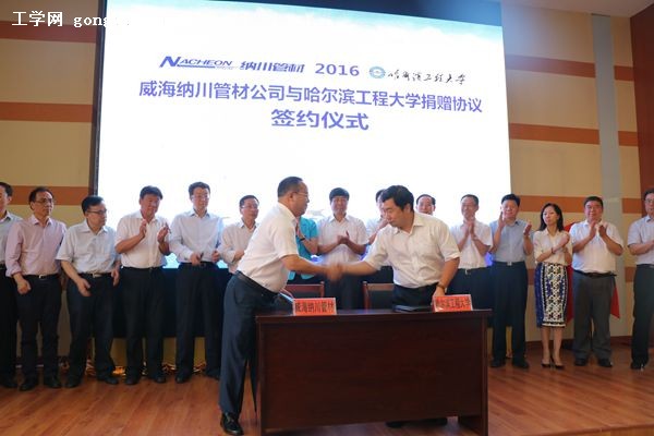 会上,威海纳川管材有限公司向学校捐赠100万元,设立“威海纳川科技创新基金”,用于支持学校新材料、海洋工程等技术的创新研发、人才培养。