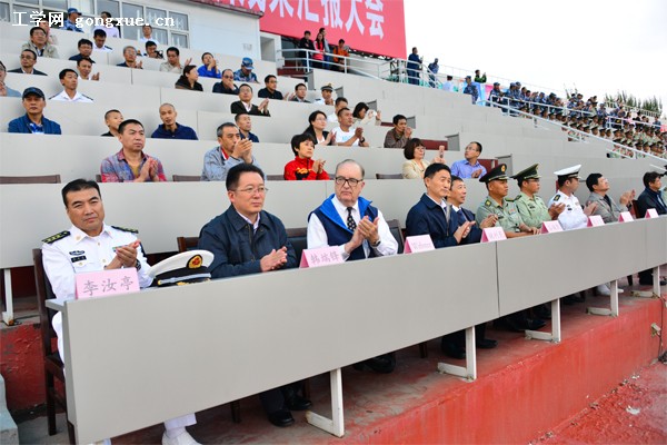 省军区学生军训工作办公室主任赵汝亮,承训部队、武警黑龙江省总队第二支队政治处主任张立权,海军大连舰艇学院学员旅军事基础教研室主任卢石,省委宣传部国防教育办公室主任李荆复,省教育厅体育卫生艺术处处长张润林,承训部队带队首长、武警黑龙江省总队第二支队郭伟,省教育厅体育卫生艺术处调研员郑凯;校党委书记谷焕民,校纪委书记姚利民,校深海工程“111”创新引智基地大师、美国工程院院士、原加州大学伯克利分校副校长 Webster教授,副校长韩端锋,海军驻校后备军官选拔培养工作办公室主任李汝亭出席会议。校党委副书记、2016级军训团第一政治委员夏桂华主持会议。
