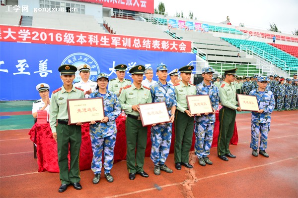 另讯9日上午,2016级新生军训总结表彰大会在北体育场举行。大会授予一营6连等4个连队“先进连队”称号、宿露等12名指导员“优秀指导员”称号、聂宝峰等26名教官“优秀教官”称号、孙碧珣等268名同学“优秀学员”称号,并为他们颁发了荣誉证书。