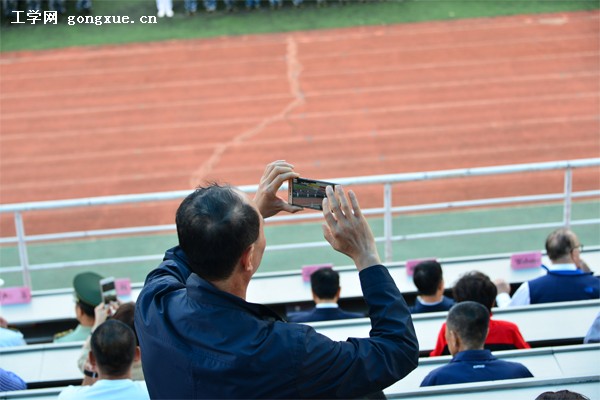 分列式随即开始,在军旗的带领下,女兵、国防生、男兵方队以严整的队形、整齐的步伐依次经过主席台。同学们英姿勃发、气宇轩昂,展现了作风优良、训练有素的军人风采,充分体现了本次军训的丰硕成果。校领导和各位来宾站立,频频举手向他们致意,观众席上也为同学们的精彩表演报以热烈的掌声。