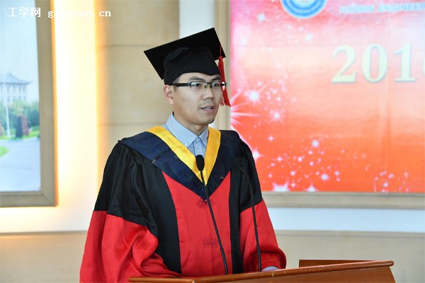 水声学院2013级博士生韩笑在仪式上代表毕业生发言。他说,即将告别熟悉的母校、踏上工作岗位,我们会带着母校的关爱,带着哈工程人“大工至善”“大学至真”的精神,带着梦想,再次出发。在未来的日子中,即使遇到低谷,我们也会不忘初心,继续前行,成为母校的骄傲和国家的栋梁。
