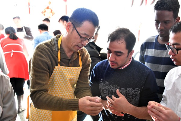 在留学生公寓,来自各国的留学生正在包饺子,校领导带上围裙加入到留学生当中,手把手地教他们包饺子。留学生们借着这个机会向校领导们请教擀饺子皮、掐边儿的窍门,随后有模有样地操作起来。虽然大家包的饺子形态各异、大小不同,有的饺子都“露馅”了,但大家仍然互相打趣,交流经验,开心得不亦乐乎。留学生纷纷表示,在哈工程不仅学到了知识,而且感受到了如同家人一般的温暖关怀。姚郁祝愿广大留学生学习愉快,生活幸福。并寄语他们:既要学好专业知识,也要努力学好汉语,成为中国文化的传播者,为学校国际化建设做出贡献。