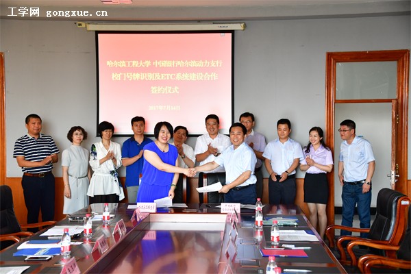 7月14日上午,我校与中国银行哈尔滨动力支行校门号牌识别及ETC系统建设合作签约仪式在主楼党政会议室举行。双方就投资金额、建设期限、一卡通升级等方面的合作达成了共识。中国银行黑龙江省分行副行长刘军、副校长高晚欣出席仪式。