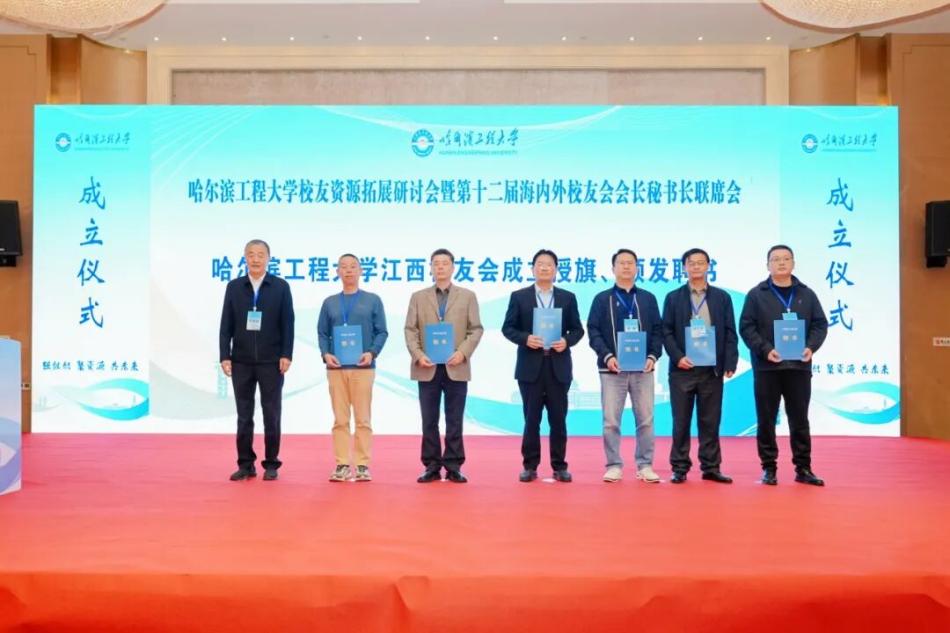 大会举行了哈尔滨工程大学江西校友会成立仪式。刘志刚为江西校友会授旗,崔锐捷为江西校友会主要成员颁发聘书。学校船舶工程学院教授张阿漫、发展联络部负责人,江西校友会会长何卫华、秘书长黄经元共同为“哈尔滨工程大学江西校友之家”揭牌。